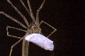 rozpościera pomiędzy odnóżami tylnymi nić i oczekuje na